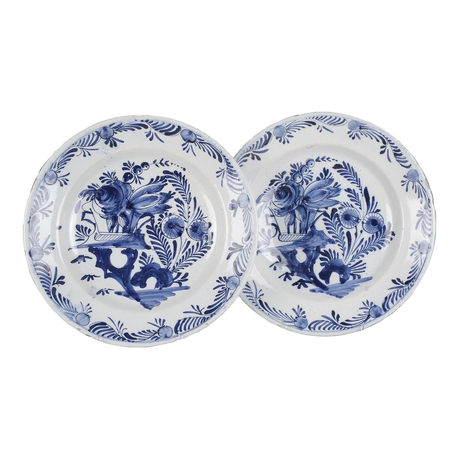 18th-Century Dutch Delft Chinoiserie Plates, Pair